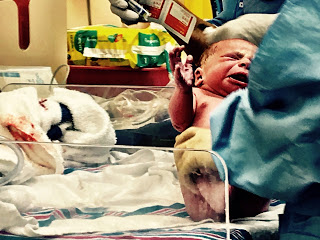 It was 5:30pm when I finally got into my room and by 6pm I had a severe headache the likes of which I've never known. I felt as if my head would explode off my neck. Actually, I kind of wished it just would for some relief! In addition, I could barely see anything as my vision continuously grew more and more blurry, which is another symptom of preeclampsia. By 8pm I was hooked to an IV for fluids because I couldn’t stop vomiting and by around 9:30pm they had to hook me up to another IV for an aggressive magnesium treatment because I was vomiting, shaking uncontrollably and according to doctors, at high risk for seizure or stroke. Once the magnesium started I got even more sick. Nothing they gave me would take down the headache or the blood pressure. For the next couple of hours all I could do was lie there vomiting and trying to breathe through the worst pain I have ever felt. Next, I began shaking uncontrollably and at that point the medical team rushed in to inform me that I needed an immediate c-section or I would most certainly have a stroke. I had been adamant in my birth plan about no c-section as I was warned that the docs like to do them these days because it is more expedient than potential hours of labor. But in my case, it was the only way I was going to survive. What a scary thing to hear. A badass young nurse came in and grabbed both my arms and said, “Sweetheart we can’t fuck around anymore - this baby needs to come out now!” I laughed, cried and surrendered.