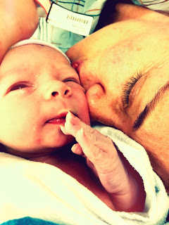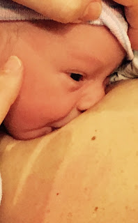 By the time I got settled in my room they brought him back and placed him on me to see if he would nurse. They wanted to see if he would take to it naturally and right away. Well, I’m one proud mama to say that this little sucker (pun very much intended) found that nipple instantly and latched on like a pro! Everyone in the room cheered. I had read beforehand that it’s often not that easy and it was something I was hoping to be able to do but knowing so many women who couldn’t or didn’t I was prepared for it not to work. But lo and behold, he’s a real pro and my bond with him in breast feeding is a saving grace. I call him my Lil' Champ, (based on a tiny convenience market from my childhood.)
